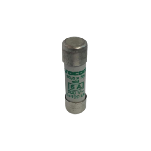 FUSÍVEL CARTUCHO 6A, 500V~, I=120kA, AÇÃO aM, 10.3x38. CÓD.6013006